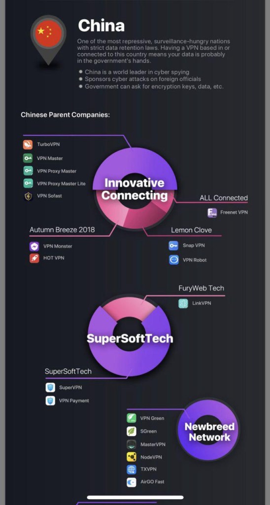 很多人在分享自己使用的VPN時都會強調「免費試用」、「便宜」、「服務器在中國」,但是真正安全的VPN需要極高的成本去運營,並且需要不斷地嘗試突破中共的網絡防火牆,成本不會低廉。並且真正安全的VPN的服務器不可能假設在中國這樣一個實行世界上最嚴格的網路管控的國家境內。那麼這些便宜實惠、註冊地還在中國境內的VPN是如何存在的呢?因為它們是中共控制的釣魚VPN。(見下圖)
